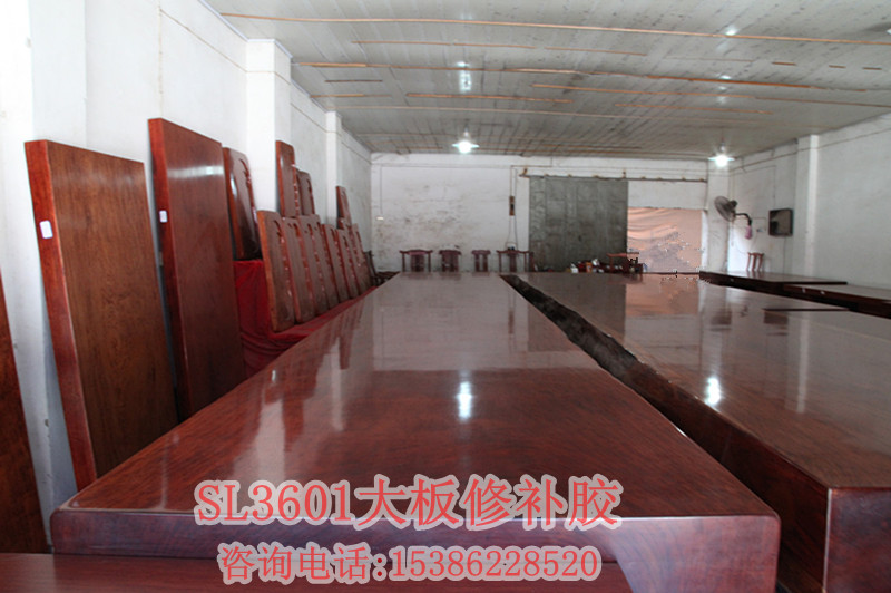 因?yàn)槟静纳厦嬗械目p隙較小,所以要選用滲透力好的膠來修補(bǔ)它,但是現(xiàn)在有很多大板加工廠用的是502類似的水性膠,這種膠雖然固化時(shí)間短,但是耐老化情況不好,對于一顆成長了上百年歷史的原木來說要體現(xiàn)它的價(jià)值當(dāng)然需要每一件都用好的材料來輔助它加工成為精品、藝術(shù)品,所以強(qiáng)烈給大家推薦SL3601透明裂縫膠這款膠顏色是完全透明的可以根據(jù)木材的顏色添加不同顏色的色粉;流動性非常好,特別適合細(xì)小裂縫的修補(bǔ)和灌注修補(bǔ);