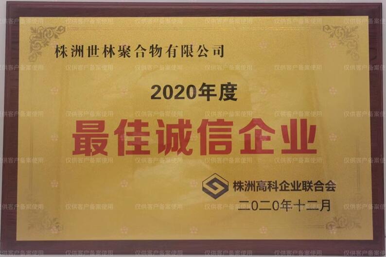 祝賀株洲世林聚合物有限公司獲得2020年度“最佳誠信企業(yè)”