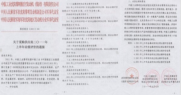 10月17日一早, 中航工業(yè)沈陽黎明航空發(fā)動機(集團)有限公司發(fā)來賀電:祝賀世林膠業(yè)在2011年上半年非金屬材料供應(yīng)商綜合評價結(jié)果中各項指標均為滿分!