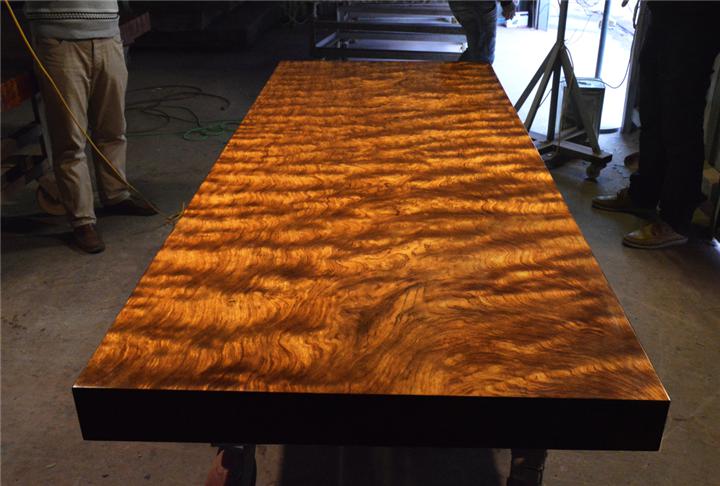 實木大板,是近幾年漸趨流行的一種商業(yè)和辦公家具,它主要由外國進(jìn)口的較為名貴的百年老木做成。這些木頭口徑較大,一般少在2000px以上上,從中切出一片10-375px厚的大板,就是實木大板?捎糜谧鲛k公桌、大班臺、主管桌、會議桌以及辦公電腦桌等。主要的材質(zhì)有巴西花梨、非洲楠木、非洲雞翅木、緬甸金絲柚木、非洲紅花梨、非洲黃花梨、非洲奧坎花梨等。實木大板在成型之前的木材是有許多無規(guī)則的裂縫、蟲洞的,但我們買到的實木大板看不到這些裂縫,這是怎么弄的呢?